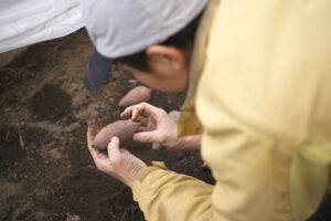 芋類はすでに芽を出し、ニンジンも発芽して除草や間引き、カブは最終間引き、